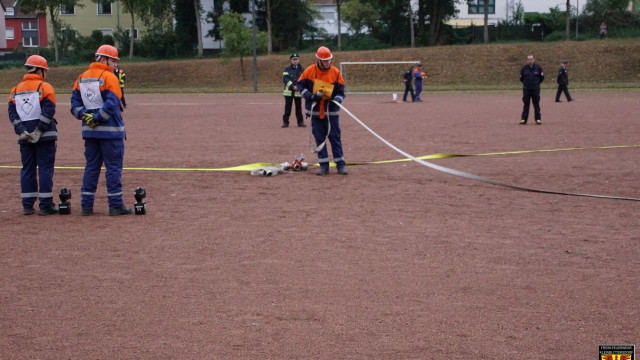 Um alle Aufgaben zu bestehen beginnt die Vorbereitung Monate vor der Abnahme. Für die Jugendbetreuer bedeutet das eine enorme zusätzliche Belastung, da ja die „normalen“ Übungen mit der restlichen Jugendwehr weitergehen. Eine Gruppe besteht immer aus 9 Jugendlichen. Sie können die Aufgaben nur als Team bestehen, da heißt entweder bestehen alle einer Gruppe die Prüfungen oder keiner. Lediglich ein Prüfungsteil (außer dem Löschangriff und der Fragenbeantwortung) kann unter bestimmten Voraussetzungen bei nichterreichen der Vorgaben am gleichen Tag wiederholt werden. Ansonsten muss die ganze Prüfung zu einem späteren Zeitpunkt wiederholt werden. Eine unserer Gruppen hatte gerade in ihrer Paradedisziplin, der Schnelligkeitsübung, Pech. Dabei ging es darum, in kürzester Zeit 120 Meter Schlauchleitung zu verlegen. Ein gemachter Fehler wurde zwar ausgebügelt und die Leitung war noch innerhalb des Zeitlimits verlegt, jedoch wurde dabei ein Folgefehler begangen, sodass dieser Prüfungsteil nicht bestanden war. Nun waren natürlich der Druck und die Nervosität sehr groß, da jetzt nichts mehr schief gehen durfte. Umso beachtlicher war es, dass es der Gruppe in der Wiederholung gelang, eine tolle Leistung zu erbringen und drei von vier möglichen Punkten zu erreichen.