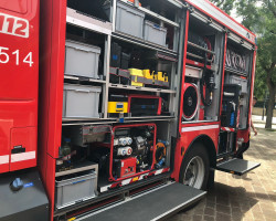 Hierzu besitzt das Fahrzeug etwa 1800m Schlauch. Dass sind ca. 36 dieser F Schläuche. Dieses System bezeichnet man als „Hydrans Fire System“ und bietet aufgrund dieser dicken Schläuche einen geringen Reibungsverlust und somit eine große Menge an Wasserförderung. Nachteile hierbei dürfte wohl das Gewicht eines solchen Systems mit sich bringen. Doch das System preist an mit einer Stärke von 4 Feuerwehrkräfte aufgebaut und Betrieben werden zu können.