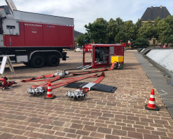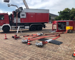 Nach einer Stärkung zu Mittag, gab es dann etliche Schauübungen besonders für Kinder und Jugendliche zur Nachwuchsförderung. Denn auch in Frankreich setzt man stark auf den Nachwuchs, denn dieser sichert die Zukunft und das Bestehen der Feuerwehr. So gab es z.B. die Möglichkeit, einmal den Umgang mit Hydraulischen Rettungsgeräten wie Schere und Spreizer kennenzulernen.