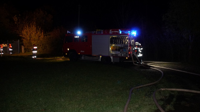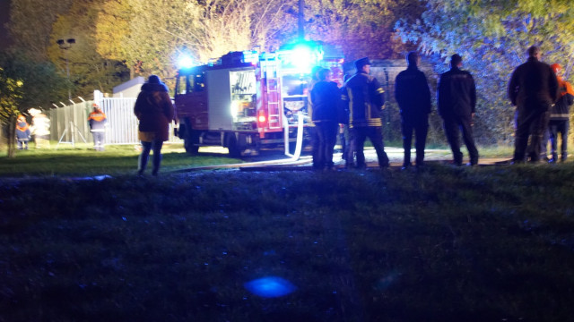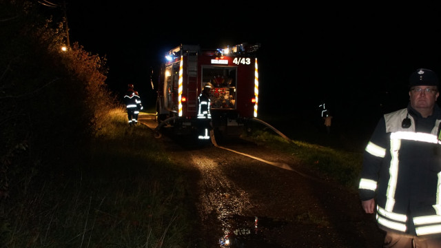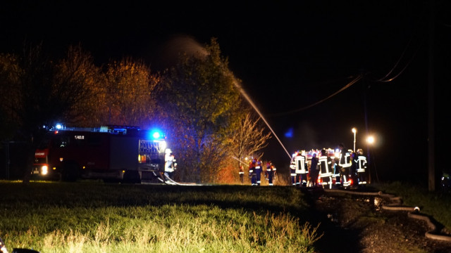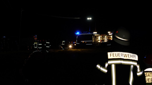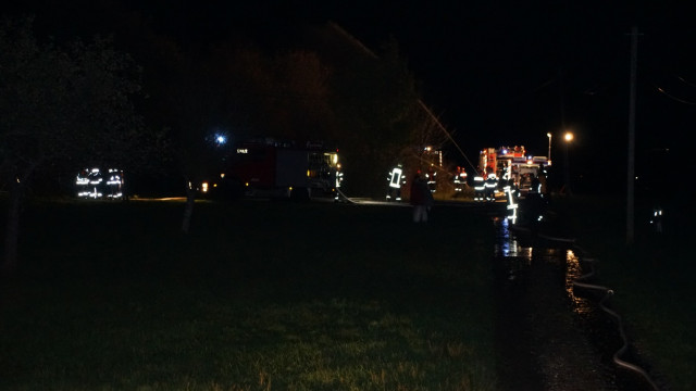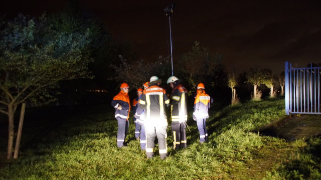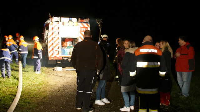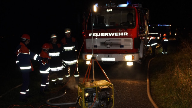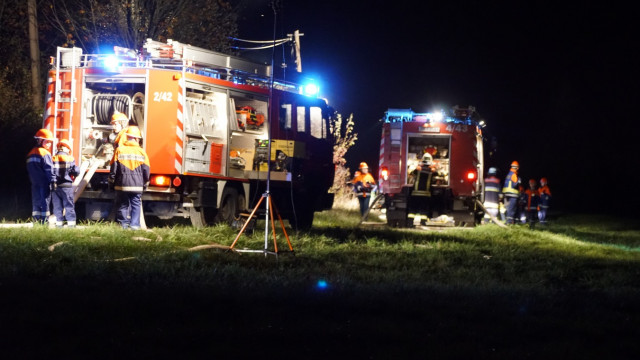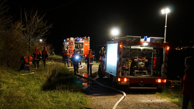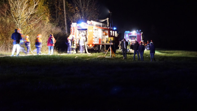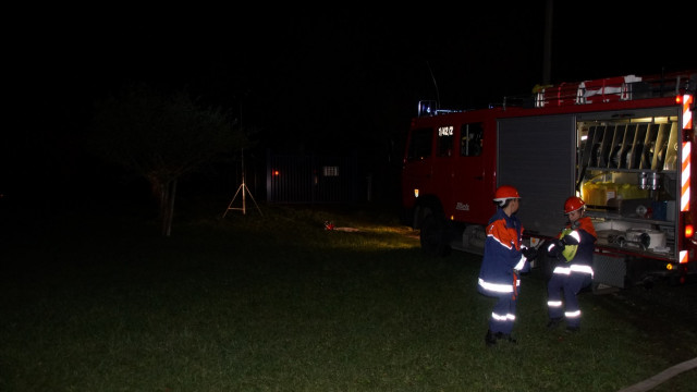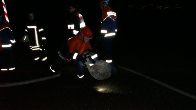 Und das Übungsscenario hatte es in sich. Es ging um einen Vegetationsbrand (kleiner Wald) in unmittelbarer Nähe eines Sendemastes. Das Übergreifen des Brandes musste verhindert werden. Zur Löschwasserversorgung wurde ein Pendelverkehr mit Fahrzeugen, die über einen Löschwassertank verfügen, eingerichtet. Ferner war die weitläufige Einsatzstelle zu beleuchten. Erschwerend kam hinzu, dass es vor der Übung ergiebige Regenfälle gab, die das Gelände matschig machten.