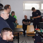 Danach kommt eine praktische Einführung, bei der mit einer Brandsimulationsanlage ein Brand simuliert wird, der dann mit umweltfreundlichen Übungslöschern gelöscht wird. An dieser Unterweisung ist immer der örtliche Löschbezirk beteiligt.