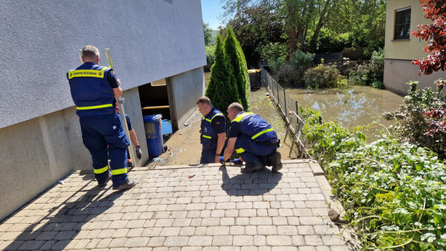 Mitarbeiter des Bauhofes beobachten seit dem Vortag permanent die Lage und waren mit einem Bagger vor Ort. Das Regenrückhaltebecken funktionierte und hielt. Es kam aber an anderer Stelle zu einem überfluteten Keller. Als der Regen nachließ, gingen die Kräfte vor Ort davon aus, dass der Einsatz für die Feuerwehr locker an diesem Tag beendet werden konnte.